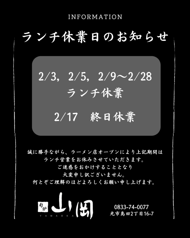 店舗施設の安全・衛生管理は徹底して行っております。ご安心して旬炉 山岡の味をお楽しみください。